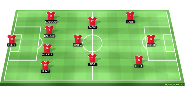 Probable Lineup (4-3-3): Roefs; Hume, Ballard, Mukiele, Masuaku; Sadiki, Rigg, Diarra; Talbi, Isidor, Le Fee