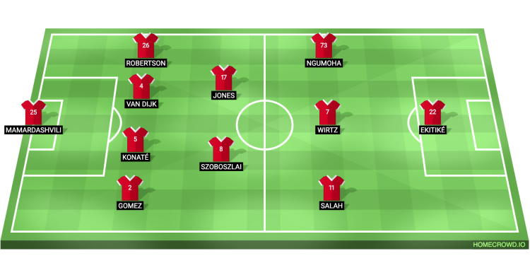 Probable Lineup (4-2-3-1): Mamardashvili; Gomez, Konate, van Dijk, Robertson; Szoboszlai, Jones; Salah, Wirtz, Ngumoha; Ekitike