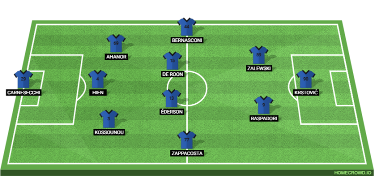 Probable Lineup (3-4-2-1): Carnesecchi; Kossounou, Hien, Ahanor; Zappacosta, Ederson, De Roon, Bernasconi; Raspadori, Zalewski; Krstovic