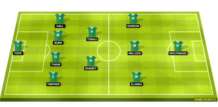 Probable Lineup (4-2-3-1): Pope; Trippier, Thiaw, Burn, Hall; Ramsey, Tonali; Elanga, Willock, Gordon; Woltemade