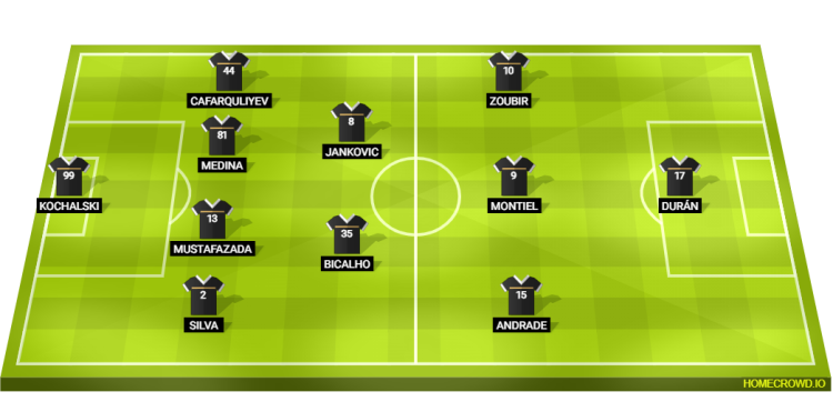 Probable Lineup (4-2-3-1): Kochalski; Silva, Mustafazade, Medina, Cafarguliyev; Bicalho, Jankovic; Andrade, Montiel, Zoubir; Duran