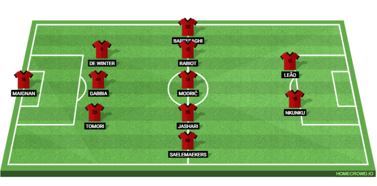 Probable Lineup (3-5-2): Maignan; Tomori, Gabbia, De Winter; Saelemaekers, Jashari, Modric, Rabiot, Bartesaghi; Leao, Nkunku