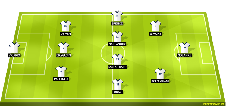 Probable Line-up (3-4-2-1): Vicario; Palhinha, Dragusin, Van de Ven; Gray, Sarr, Gallagher, Spence; Kolo Muani, Simons; Solanke