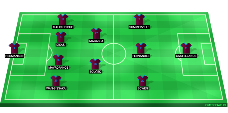 Probable Lineup (4-2-3-1): Hermansen; Wan-Bissaka, Mavropanos, Disasi, Diouf; Soucek, Magassa; Bowen, Fernandes, Summerville; Castellanos