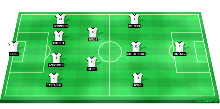 Probable Lineup (4-2-3-1): Leno, Castagne, Andersen, Cuenca, Robinson; Reed, Berge; Bobb, Smith Rowe, Wilson; Jimenez