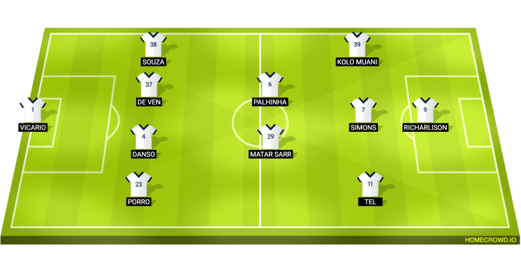 Probable Lineup (4-2-3-1): Vicario; Porro, Danso, van de Ven, Souza; Sarr, Palhinha; Tel, Simons, Kolo Muani; Richarlison
