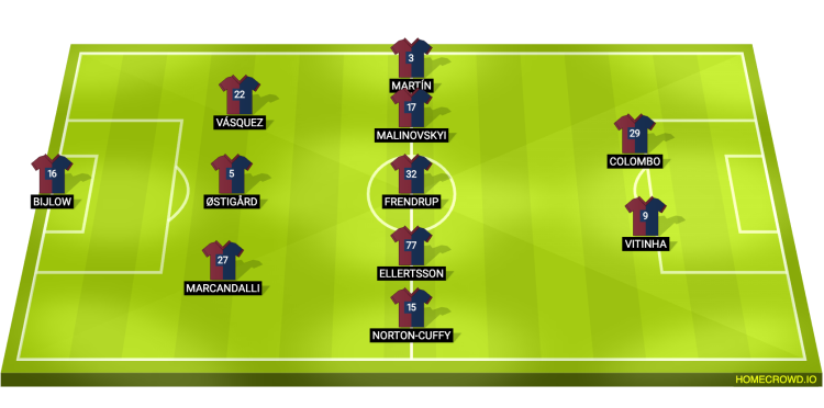 Probable Lineup (3-5-2): Bijlow; Marcandalli, Ostigard, Vazquez; Norton-Cuffy, Ellertsson, Frendrup, Malinovskyi, Martin; Vitinha, Colombo