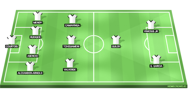 Probable Lineup (4-3-1-2): Courtois; Alexander-Arnold, Asencio, Rudiger, Mendy; Valverde, Tchouameni, Camavinga; Guler; Gonzalo Garcia, Vinicius Junior
