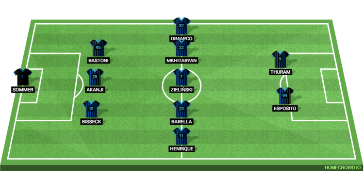 Probable Lineup (3-5-2): Sommer; Bisseck, Akanji, Bastoni; Henrique, Barella, Zielinski, Mkhitaryan, Dimarco; Thuram, Esposito