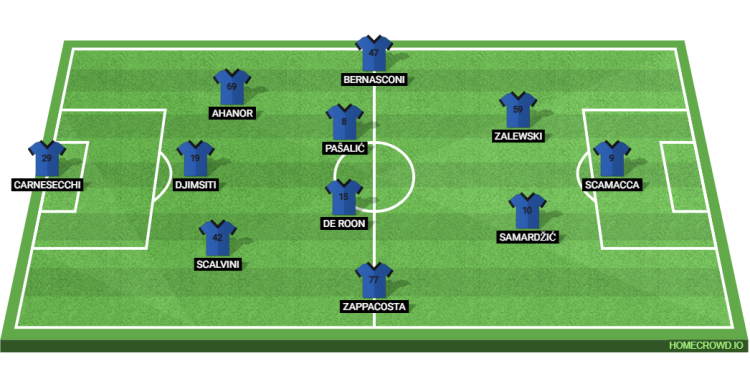 Probable Lineup (3-4-2-1): Carnesecchi; Scalvini, Djimsiti, Ahanor; Zappacosta, De Roon, Pasalic, Bernasconi; Samardzic, Zalewski; Scamacca
