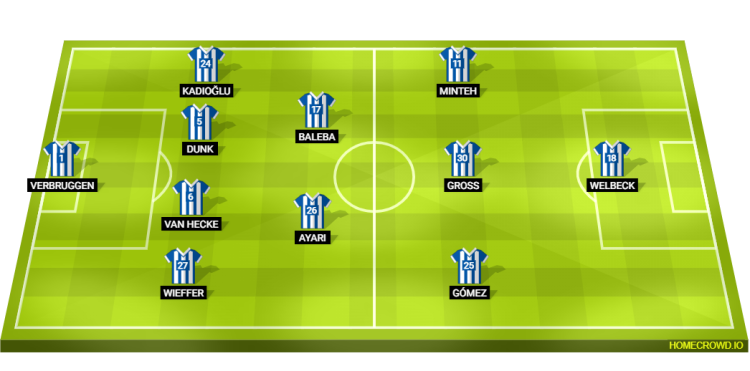 Probable Lineup (4-2-3-1): Verbruggen; Wieffer, van Hecke, Dunk, Kadioglu; Ayari, Baleba; Gomez, Gross, Minteh; Welbeck