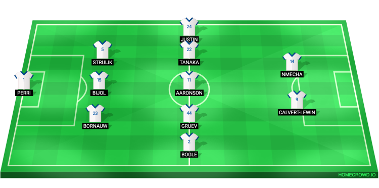 Probable Lineup (3-5-2): Perri; Bornauw, Bijol, Struijk; Bogle, Aaronson, Tanaka, Gruev, Justin; Nmecha, Calvert-Lewin