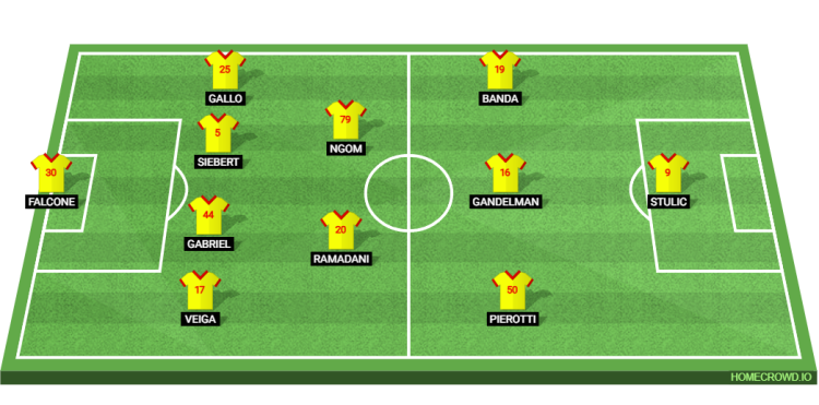 Probable Lineup (4-2-3-1): Falcone; Veiga, Gabriel, Siebert, Gallo; Ramadani, Ngom; Pierotti, Gandelman, Banda; Stulic