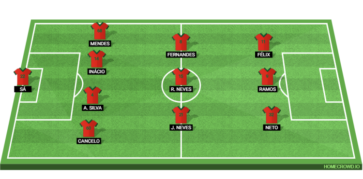 Probable Lineup (4-3-3): Sa; Cancelo, Antonio Silva, Inacio, Mendes; Joao Neves, Ruben Neves, Fernandes; Neto, Ramos, Felix