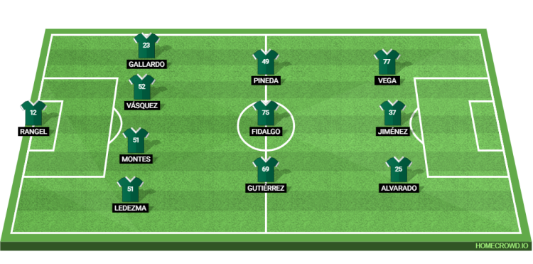 Probable Lineup (4-3-3): Rangel; Ledezma, Montes, Vasquez, Gallardo; Gutierrez, Fidalgo, Pineda; Alvarado, Jimenez, Vega