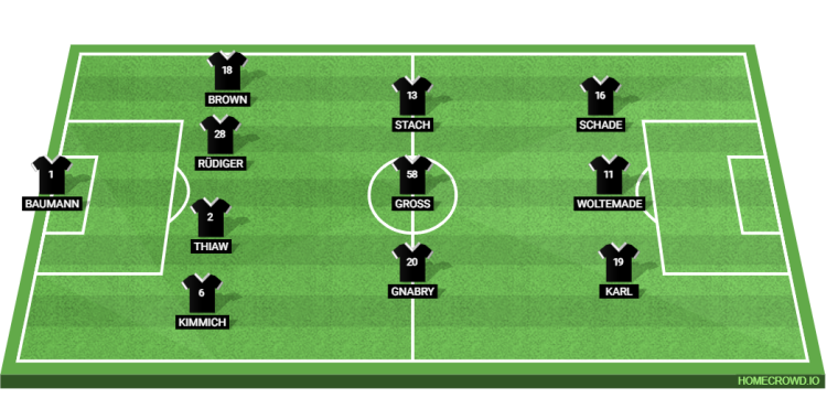 Probable Lineup (4-3-3): Baumann; Kimmich, Thiaw, Rudiger, Brown; Gnabry, Gross, Stach; Karl, Woltemade, Schade