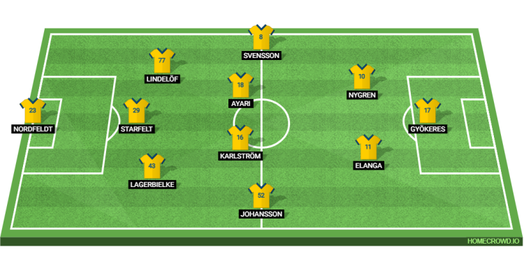 Probable Lineup (3-4-2-1): Nordfeldt; Lagerbielke, Starfelt, Lindelof; Johansson, Karlstrom, Ayari, Svensson; Elanga, Nygren; Gyokeres