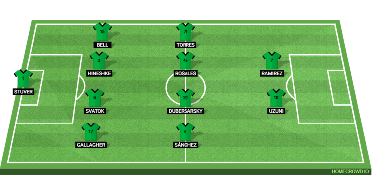 Probable Lineup (4-4-2): Stuver; Gallagher, Svatok, Hines-Ike, Bell; Sanchez, Dubersarsky, Rosales, Torres; Uzuni, Ramirez