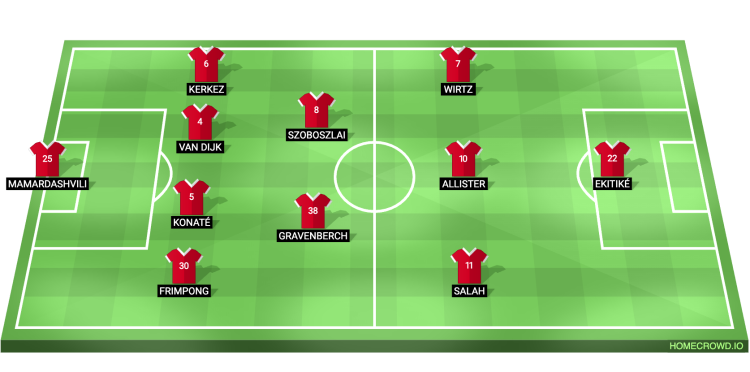Predicted Liverpool XI: Mamardashvilli; Frimpong, Konate, van Dijk, Kerkez; Gravenberch, Szoboszlai; Salah, Mac Allister, Wirtz; Ekitike