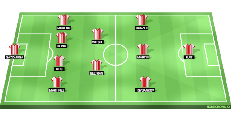 Probable Lineup (4-2-3-1): Gazzaniga; Martinez, Reis, Blind, Moreno; Beltran, Witsel; Tsygankov, Martin, Ounahi; Ruiz