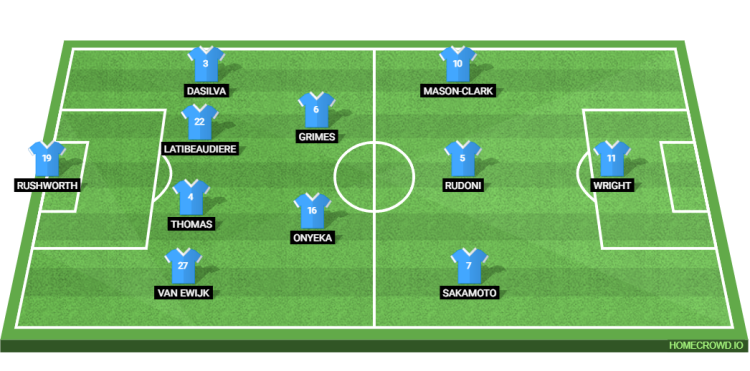 Probable Lineup (4-2-3-1): Rushworth; Van Ewijk, Thomas, Latibeaudiere, Dasilva; Onyeka, Grimes; Sakamoto, Rudoni, Mason-Clark; Wright