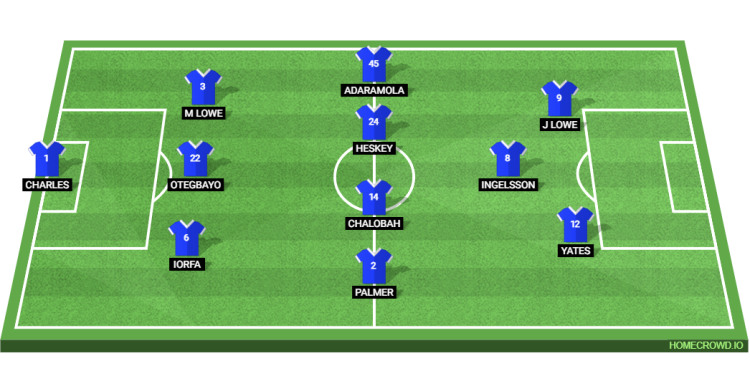 Probable Lineup (3-4-3): Charles; Iorfa, Otegbayo, M Lowe; Palmer, Chalobah, Heskey, Adaramola; Ingelsson, Yates, J Lowe