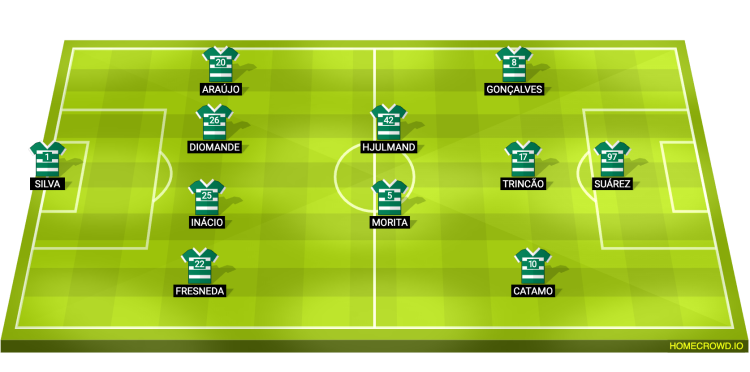 Probable Lineup (4-2-3-1) – Silva; Fresneda, Inacio, Diomande, Araujo; Morita, Hjulmand; Catamo, Trincao, Goncalves; Suarez