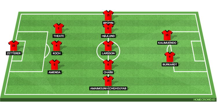 Probable Lineup (3-5-2): Zetterer; Amenda, Koch, Theate; Amaimouni-Echghouyab, Chaibi, Larsson, Hojlund, Brown; Burkardt, Kalimuendo