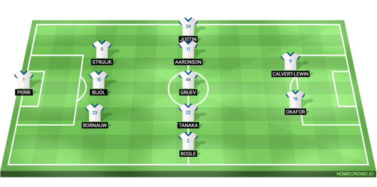 Probable Lineup (3-5-2): Perri; Bornauw, Bijol, Struijk; Bogle, Aaronson, Tanaka, Gruev, Justin; Okafor, Calvert-Lewin