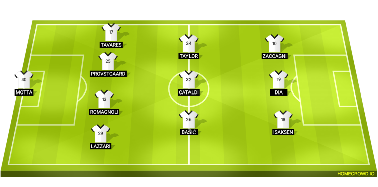 Probable Lineup (4-3-3): Motta; Lazzari, Romagnoli, Provstgaard, Tavares; Basic, Cataldi, Taylor; Isaksen, Dia, Zaccagni