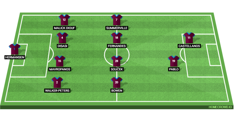 Probable Lineup (4-4-1-1): Hermansen; Walker-Peters, Mavropanos, Disasi, Malick Diouf; Bowen, Soucek, Fernandes, Summerville; Pablo; Castellanos