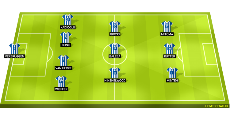 Probable Lineup (4-3-3): Verbruggen; Wieffer, Van Hecke, Dunk, Kadioglu; Hinshelwood, Baleba, Gross; Minteh, Rutter, Mitoma