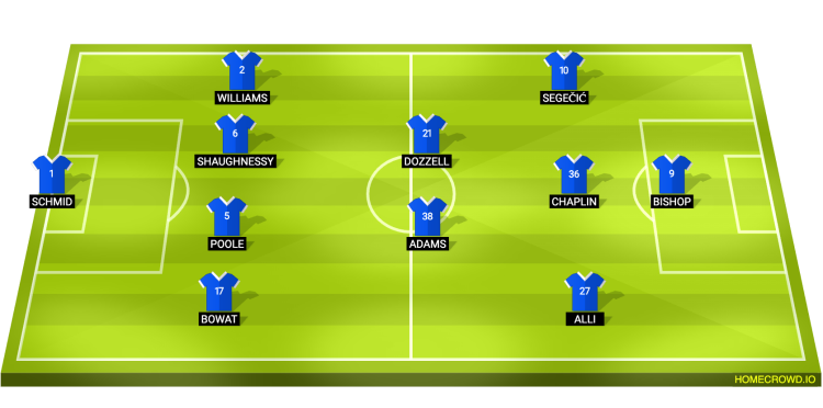 Probable Lineup (4-2-3-1) – Schmid; Bowat, Poole, Shaughnessy, Williams; Adams, Dozzell; Alli, Chaplin, Segecic; Bishop