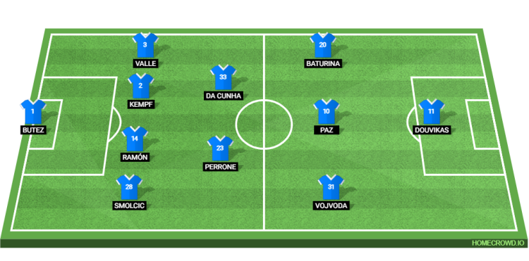Probable Lineup (4-2-3-1): Butez; Smolcic, Ramon, Kempf, Valle; Perrone, Da Cunha; Vojvoda, Paz, Baturina; Douvikas