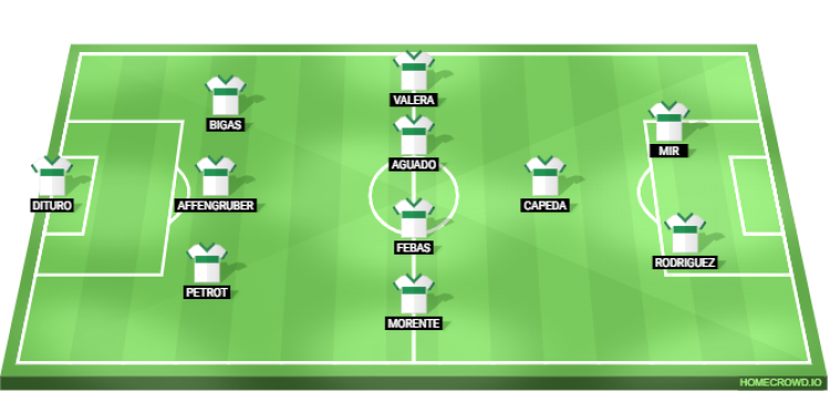 Elche will line up in a 3-4-1-2 formation, where Matias Dituro will take charge in goal. In the heart of the defence, Pedro Bigas will start alongside David Affengruber and Leo Petrot. The trio will look to keep things tight at the back, and they will receive significant support from Tete Morente and German Valera, who will feature as the wing-backs.