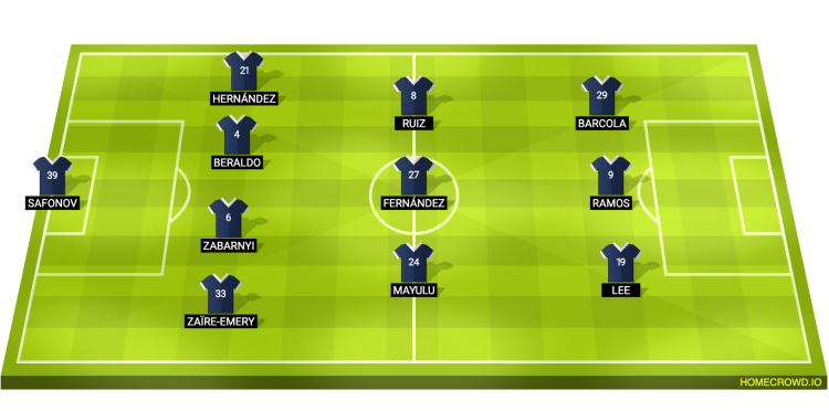 Probable Lineup (4-3-3): Safonov; Zaire-Emery, Zabarnyi, Beraldo, Hernandez; Mayulu, Fernandez, Ruiz; Lee, Ramos, Barcola