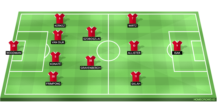 Probable Lineup (4-2-3-1): Woodman; Frimpong, Konate, van Dijk, Kerkez; Gravenberch, Szoboszlai; Salah, Mac Allister, Wirtz; Isak