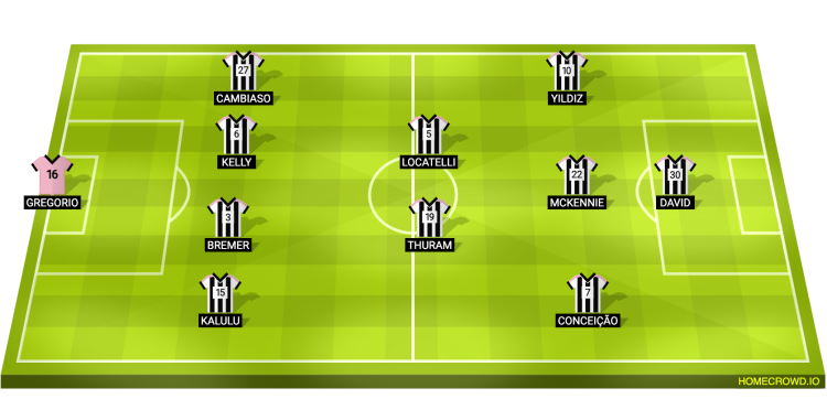 Kenan Yildiz, who has been experiencing an ongoing knee issue, should be fit enough to feature, while Thuram is also expected to take his midfield spot alongside regular partner Manuel Locatelli. Gleison Bremer and Lloyd Kelly will continue in central defence, with Pierre Kalulu and Andrea Cambiaso taking up the full-back slots.
