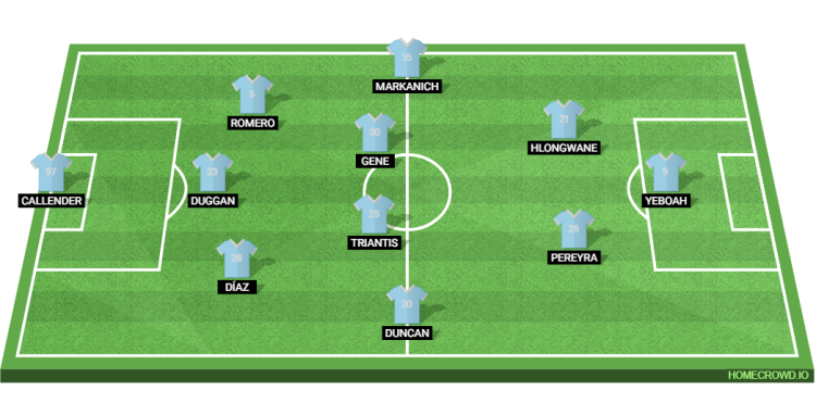 Probable Lineup (3-4-2-1): Callender; Diaz, Duggan,Romero; Duncan, Triantis, Gene, Markanich Jr; Pereyra, Chancalay; Yeboah