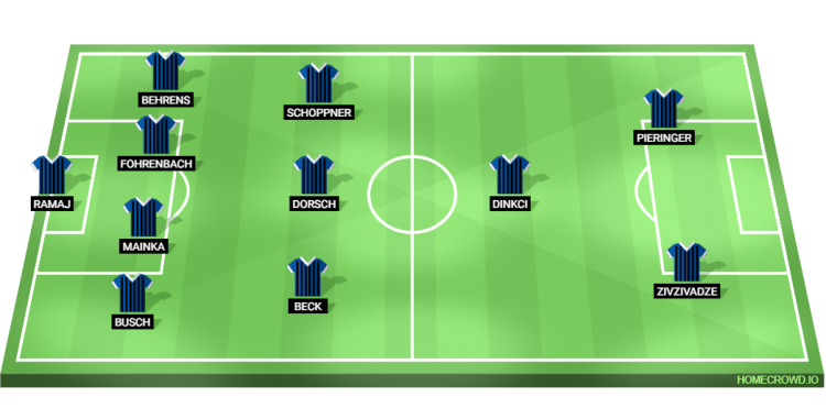 Probable Lineup (4-3-1-2): Ramaj; Busch, Mainka, Fohrenbach, Behrens; Beck, Dorsch, Schoppner; Dinkci; Zivzivadze, Pieringer