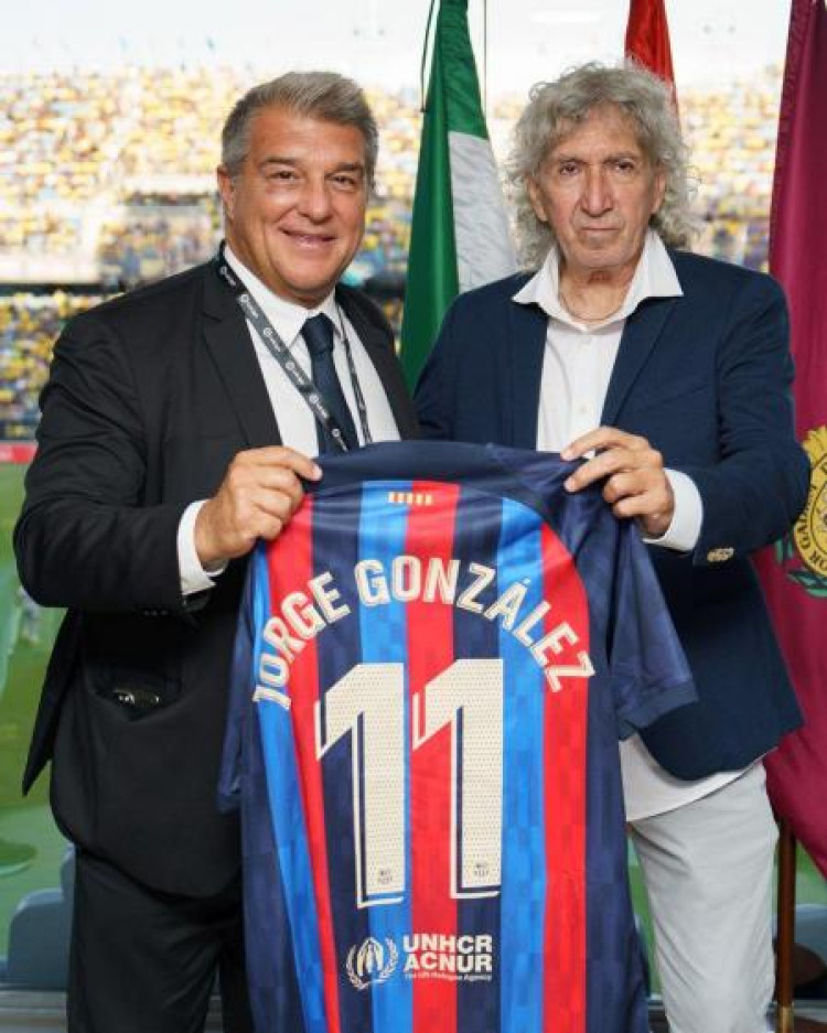 Laporta entregó en 2022 una camiseta del Barça al Mágico González