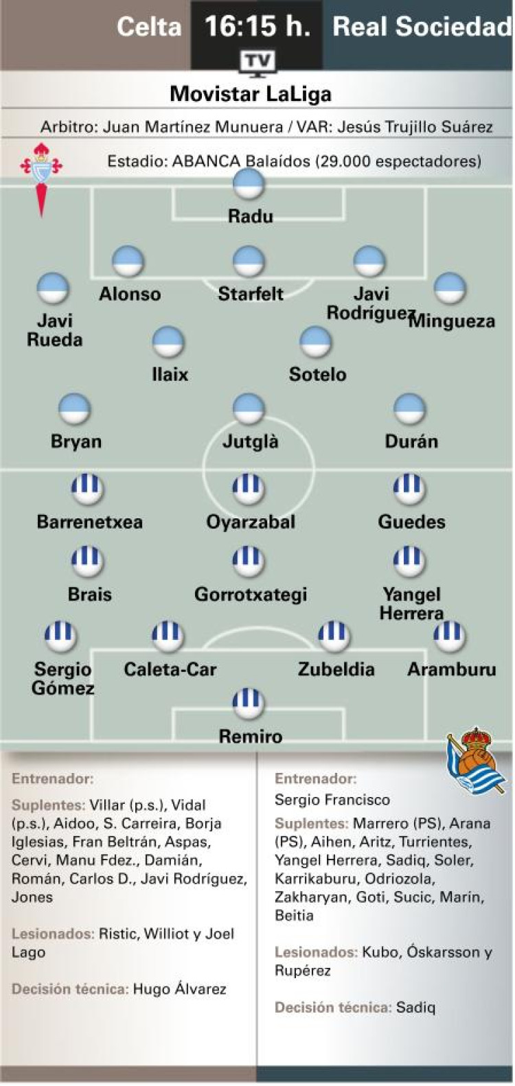 No es un partido cualquiera. No es, para nada, un duelo más. El choque entre Celta y Real Sociedad (Balaídos, 16:15) es un envite de suma importancia para los txui urdines, que se juegan mucho más que la honra en 90 minutos. Balaídos recibirá a un elenco donostiarra que llega muy tocado, en la posición más baja de la tabla, y con le necesidad y la imperiosa urgencia de lograr su primera victoria a domicilio. Los de Sergio Francisco solamente han sumado cinco puntos en lo que va de campeonato y las sensaciones no son mucho mejores.