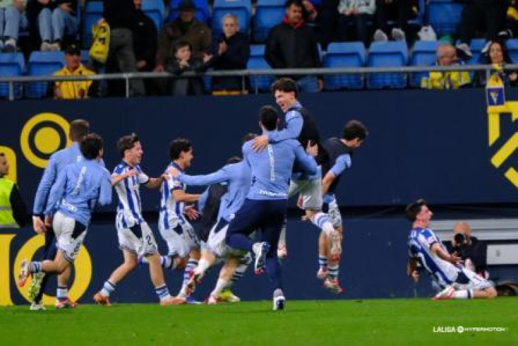 Estratosférica demostración competitiva y de fútbol de Zubieta del Sanse en Cádiz (0-2) para sumar su tercera victoria consecutiva con solvencia y brillantez, la tercera de la temporada a domicilio y la segunda seguida, gracias a los goles de un gran Ochieng y de Astiazarán al final. Los puntos, merecidísimos, sirven a los de Ansotegi para abrir brecha con el descenso que marca el Valladolid, que está ahora a cinco puntos del filial txuri urdin, que ha escalado hasta la decimotercera plaza. A un solo punto de su rival de este lunes, cuyo técnico Garitano queda tocado como demostró la descomunal pitada del estadio, y al que le ganan ya el golaveraje particular. El temporadón del Sanse sigue su curso y la permanencia en Segunda es un objetivo factible.