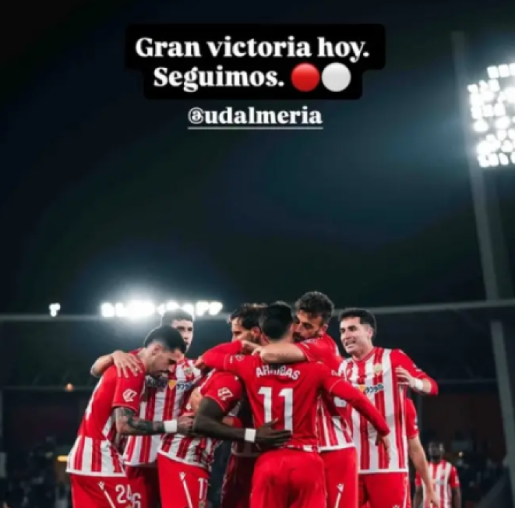 Por eso, el ex madridista no dejó escapar la ocasión de mandar un mensaje público en su cuenta de Instagram en el que demostró su interés por el futuro del equipo. "Gran victoria. Seguimos, UD Almería", escribió junto a una foto de celebración de uno de los goles del equipo de Rubi.