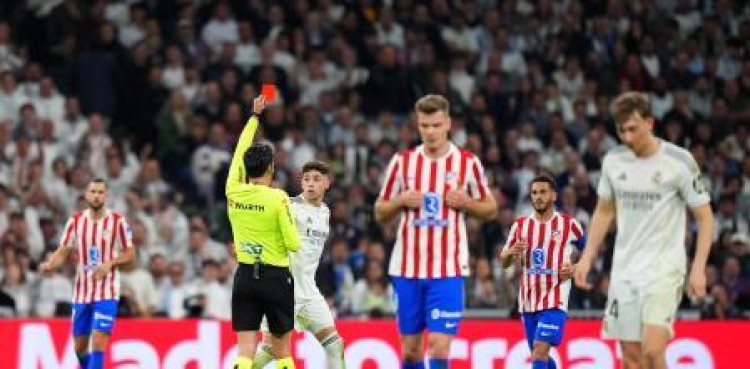 Minuto 77 de partido entre el Real Madrid y el Atlético de Madrid, ya con 3-2 en el marcador a favor de los blancos. Fede Valverde se tuvo que marchar antes de tiempo a los vestuarios por deisión del colegiado.